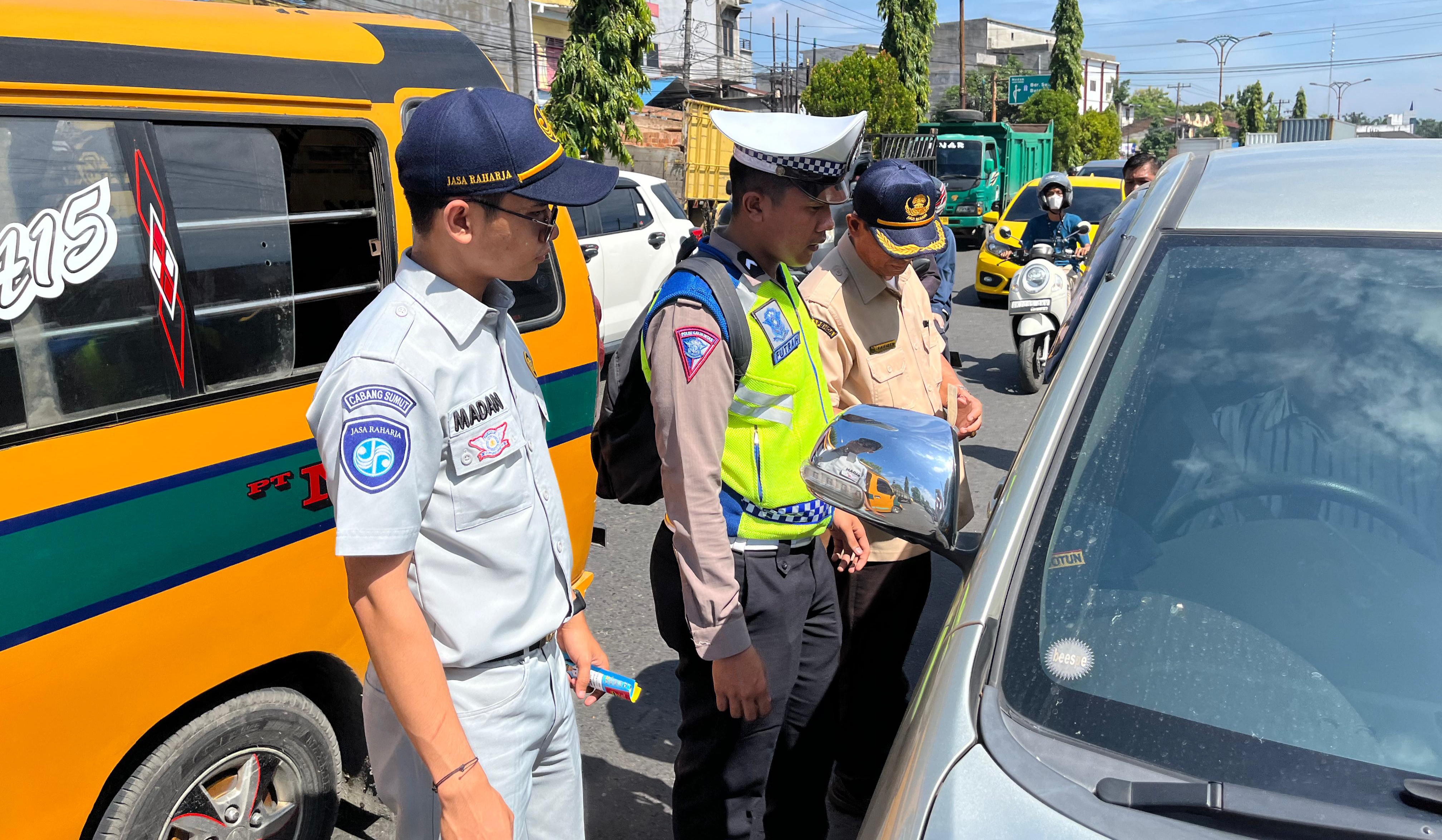 MEDAN – Jasa Raharja Sumut bersama Bapenda Sumut, dan Satlantas Polrestabes Medan menggelar razia gabungan dalam rangka meningkatkan kepatuhan masyarakat terhadap kewajiban membayar pajak kendaraan bermotor, Kamis (11/7/2024).